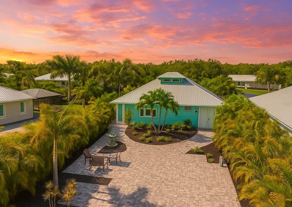 Lot 52 – Coastal Casita Retreat! Discover effortless luxury and peace of mind in this beautifully crafted 1,000 sq. ft. coastal casita located in the highly sought-after Thornton Creek Motorcoach Resort, an exclusive Class A community celebrated for its upscale amenities, sense of privacy, and welcoming lifestyle. Built with exceptional strength and craftsmanship, this home is designed to handle Florida’s toughest weather. It features ICF block construction, hurricane-impact windows and doors, spray foam insulation, and a durable metal roof—a combination that allowed it to weather a category 4 hurricane with zero screen damage. Truly, a home you can count on. Inside, you'll find a bright, open floor plan enhanced by shiplap walls, ceramic tile flooring, custom trim work, and a cozy electric fireplace with mounted TV and sound bar. The gorgeous full kitchen includes stainless steel appliances, leathered granite countertops, and a generous island with seating for four—perfect for cooking, entertaining, or casual dining. Four expansive sliding doors create an effortless connection to the oversized screened lanai, extending your living space and capturing the essence of indoor-outdoor Florida living. The lanai is ideal for entertaining, complete with two patio sets, a Weber gas grill, and dedicated power should you wish to add a hot tub. Enjoy the soothing sounds of the front-yard fountain from either the lanai or the charming front patio—your new favorite place for morning coffee or sunset cocktails. The casita includes multiple living zones: a defined dining area, a spacious sitting area with couch and bar cart, and a private bedroom with queen bed and nightstands. The full bathroom offers a beautifully tiled walk-in shower. An additional air-conditioned storage room adds tremendous versatility, featuring a Murphy bed, built-in cabinetry, a stacked washer and dryer, and secure storage for your golf cart. Outside, the expansive paver driveway offers water and power pedestals on both sides, ensuring plenty of room for your motorcoach, vehicles, and guests. Two exterior storage bins and a brand-new (2024) Rinnai tankless water heater add even more everyday convenience. Situated on a peaceful lot with a private concrete rear wall, this casita blends privacy, style, strength, and community—an ideal retreat for full-time living or seasonal enjoyment. And with no history of storm damage, it provides unmatched confidence and comfort. This is a rare opportunity to own a beautifully built, low-maintenance, high-quality casita in one of the area’s premier motorcoach resorts. Schedule your private showing today!