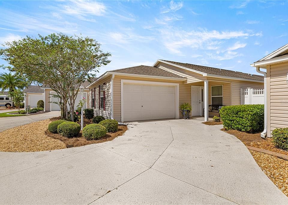 Welcome to this beautifully maintained 3-bedroom, 2-bath Courtyard Villa in the desirable Amber Villas of The Villages. This home is being offered TURNKEY and is move-in ready! Enjoy tile flooring throughout—no carpet, AC (2024), and water heater (2023). The spacious kitchen features a pantry, new dishwasher, and new microwave, while the open living area boasts high ceilings that create an airy, inviting feel. Convenient inside laundry adds to the ease of living. Step outside to your screened lanai—perfect for relaxing or entertaining in your private courtyard setting. As part of Amber Villas, you’ll enjoy all the incredible lifestyle features of The Villages, including championship and executive golf courses, swimming pools, recreation centers, fitness facilities, pickleball and tennis courts, and hundreds of clubs and social activities. The community is also golf cart friendly, giving you easy access to nearby town squares, dining, shopping, and nightly entertainment. This villa offers not only a beautiful home, but also the active Florida lifestyle you’ve been dreaming of!