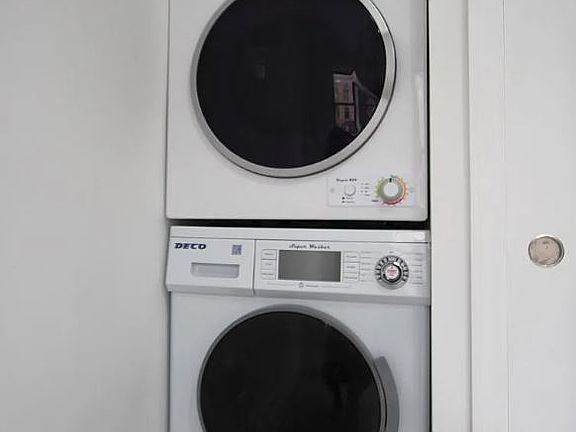 Washer dryerNice sized closetsSoaking bathtubSplit ac unitsNew kitchenSerene tree-lined street