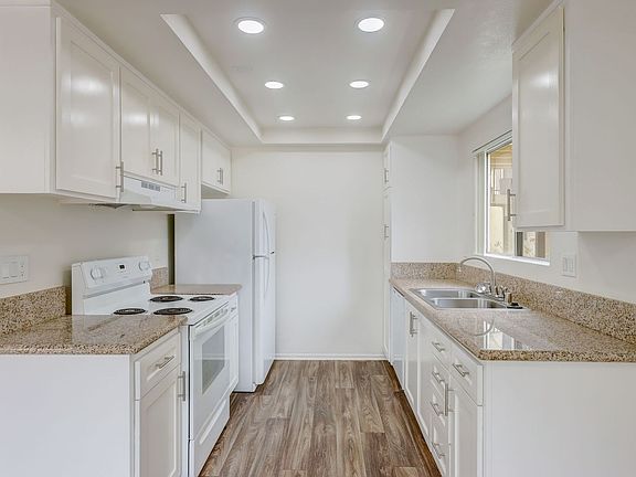 Designer shaker-style cabinetryNewly remodeled interiorsGranite countertopsContemporary appliance packageLarge bathroom vanityWood-inspired flooringPlush carpeting