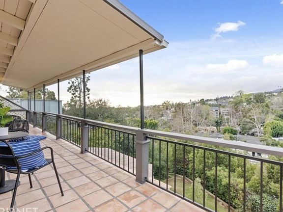 Views, Views, Views! This gorgeous 4 bedroom, 2.5 bathroom 2 story contemporary home sits on top of the canyon with a large private backyard and an extra large wrap around deck showcasing scenic canyon landscape and views of the Pacific Ocean. This home offers 1855 sq/ft of living space and has been tastefully upgraded with all the modern finishes. Entryway leads to a large galley style kitchen featuring quartz countertops, new stainless steel appliances and breakfast nook. The spacious living & formal dining area features panoramic views with floor to ceiling windows which open to a wrapping outdoor deck. The main floor is complete with a half bath and direct access to the garage. The lower floor has been completely remodeled with fresh paint and new luxury vinyl flooring throughout. The primary bathroom has been appointed with all new finishes including a double sink vanity, standalone tub and enclosed glass shower. The second full bath is complete with in unit laundry, new vanity and tub & shower combo. The property has excellent access to the Palisades Village with retail, restaurants and movies. Close to schools, beaches, parks and trails.