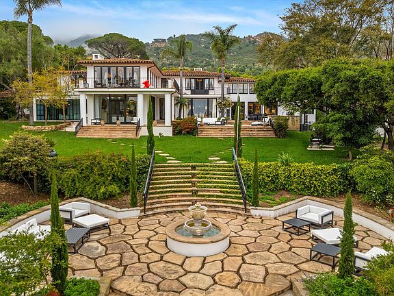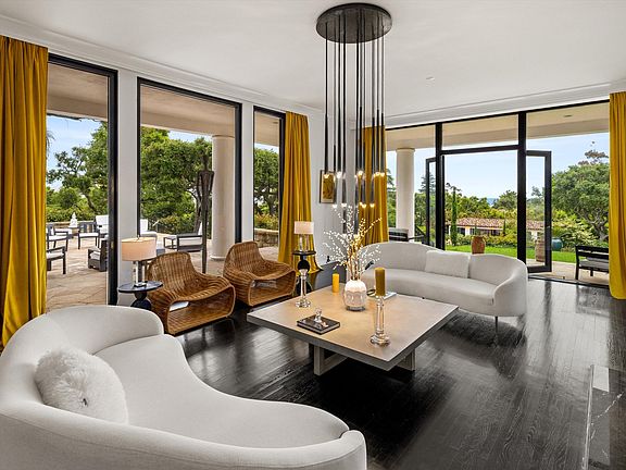 Private & gated 2.36 acres near the top of Picacho Lane with year-round natural beauty, expansive views, and space to entertain. The sprawling Mediterranean w/ modern interior styling was designed initially by Chester Carjoa circa 1930. Recently renovated surfaces and inner workings give the property a fresh and sophisticated vibe. The primary residence @ approx. 7678 square feet has an open floor plan and indoor-outdoor living from the formal living and dining rooms, kitchen/family great room, library, game room, and 1 spacious ensuite bedroom all at entry level. 3 ensuite bedrooms are located upstairs overlooking the grounds, pool, pickle-ball, bocci court and in-ground trampoline. The guest house and pool house have another 3+ bedrooms perfect for extended guests or live-ins. Inquire