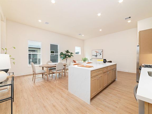 Stunning new construction 3-level home offering 3 beds and 3.5 baths, located in a private gated community. From the moment you enter, you will notice the beautiful engineered wood flooring and tall ceilings that carry throughout the home. 1st level includes a 2 car garage, 1/2 bath. 2nd level serves as the main living area and features a gorgeous kitchen with a waterfall island and breakfast bar, gas range, stainless steel appliances, quartz countertops, undermount farm sink, and under-cabinet lighting. Kitchen opens seamlessly to the combined living and dining areas. Also located on this level is a private bedroom with a full ensuite bath. 3rd level offers secondary bed with its own ensuite bath, along with the impressive primary suite. Large primary bedroom has vaulted ceilings, and a spa-inspired ensuite bath w/dual sinks, a vanity, soaking tub, glass shower, and an expansive walk-in closet. Rare highlights of this property is the private, fully fenced backyard.