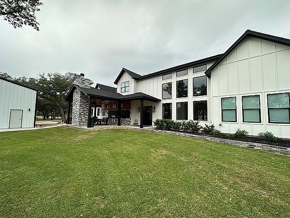 This newly custom-built home features 4,235 living sq ft tucked back on the cuddle sac, in "The Oaks Subdivision". The spacious home features 5 bedrooms each having their own on suite bathrooms. The open concept layout has a gourmet kitchen that flows into the dining area and ends with a living room that boasts 20 ft ceilings! Two stairways on either end of the home leads you into the second story. The upstairs has 3 bedrooms, media room, craft room and office. The outdoor area is perfect for entertaining with a 40x80 enclosed shop. This home is zoned in the Industrial ISD school district.