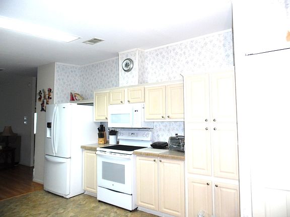 Open covered front porchLaminate flooring throughout homeLarge eat in kitchenPlenty of cabinetsDouble car painted drivewayIncludes all kitchen appliancesLanai with windows