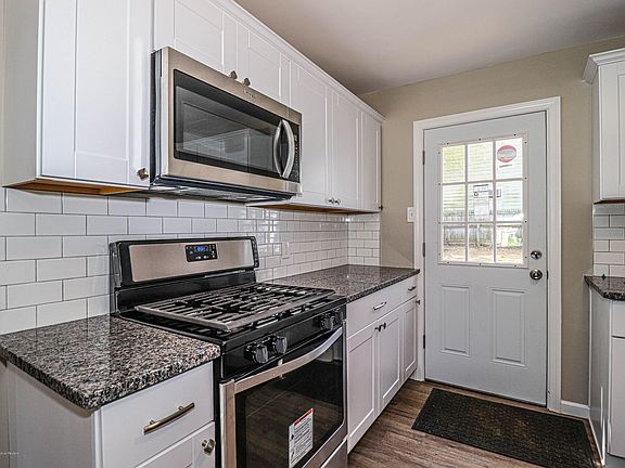 Renovated ranch style home offers 3 to 4 bedrooms. Three bedrooms are a good size. Fourth bedroom may be used as small bedroom, nursery, office, you choose. Each bedroom has ample closet space. Eat in kitchen offers a dinette area, is updated with new cabinets, tile backsplash, granite, stainless refrigerator, dishwasher, oven, microwave, door to yard or second entry. Livingroom is very spacious and comes with a ceiling fan/light. All rooms have overhead lighting. Find new walls/resheetrocked & insulated, electrical outlets, plumbing, siding, roof, flooring, fixtures, furnace, central air, hot water heater, duct work, doors, paint. Some new windows. Entertain in the large fenced back yard. Off street parking. Literally, just unpack. Close to major roads, beach, spray park, shops, dining.