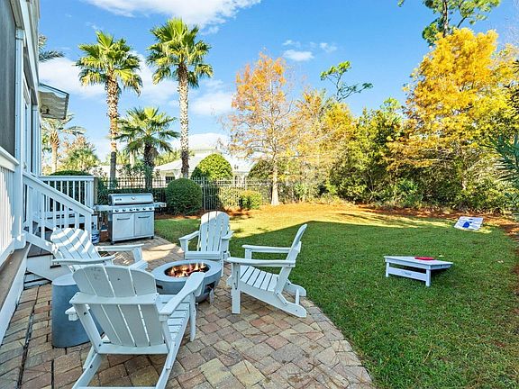 Welcome to 859 Sandgrass Blvd -- a fully furnished and beautifully updated 5-bedroom home in the sought-after community of NatureWalk at Seagrove. Ideally located just steps from the pool, playground, and nature trails, this move-in-ready home blends style, space, and convenience -- with room to add a private pool.The open main level features a renovated kitchen with quartz countertops and new appliances, a custom tile fireplace, new lighting, and French doors leading to a covered porch and fenced backyard with direct access to the community pool. Downstairs offers a guest suite and custom-built bunk room, while upstairs includes three guest rooms and a spacious primary suite with a private balcony and spa-like bath.