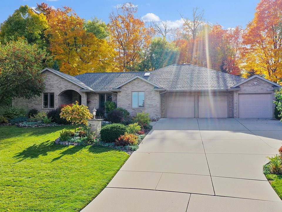 Located on a gorgeously landscaped wooded lot, this custom-built executive-quality 3BR/2.5BA ranch boasts over 2300 sqft on the main level! Full-equipped kitchen w/ prep isle, granite counter, pantry, and solid oak cabinets. LR w/ cathedral ceilings & dual-outlet gas FP. 4-Season room w/ skylights walks out to a large patio w/ firepit & terraced yard leading to a colorful canopy of shade trees. Owner's suite w/ walk-in closet, full bath. Office w/ french doors & oak HW floor. All beds+office enjoy lit tray ceilings! Lower level is ready for finishing: egress window, bath-stub & partial framing for easy expansion. Direct access to 3+ stall garage w/ 44' deep far stall for tandem parking! Showings start at 4 pm on weekdays seller works from home. *Lvg rm, dining rm & 2 BR's virtually staged.
