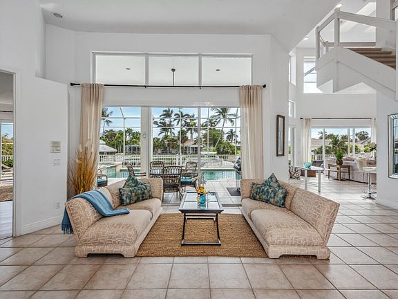 Welcome to your dream home or investment opportunity in tropical Marco Island! This spacious 4-bedroom, 3-bathroom residence offers an unbeatable location close to Marco Island's pristine Resident's Beach, making it perfect for sun-seekers and beach lovers alike. Boasting a coveted southeast exposure, this home ensures sunlight graces the sparkling pool area all day long. With an impressive 140 feet of water frontage from this key lot, the property features breathtaking converging waterway views & the added benefit of a double-wide waterway that enhances both privacy & scenic beauty. Inside, soaring 20-foot ceilings create a sense of grandeur and space, while the open layout is perfect for both relaxed living & entertaining. The newer tile roof provides peace of mind & adds a touch of modern elegance to this already stunning property and there is a newer a/c, too. This home is not only a haven for future end-users but also a lucrative opportunity for investors. With an annual rental income potential of $80,000-$100,000, this property can deliver significant returns. Whether you're looking to settle into coastal luxury or secure a high-performing investment, this waterfront gem offers the best of both worlds. Don't miss out on this rare opportunity—schedule your private showing today!