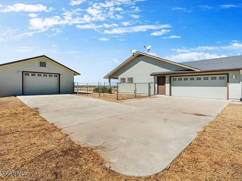 Nestled in the heart of Arizona's picturesque landscape, this sprawling 10-acre property offers a slice of rural paradise without sacrificing modern conveniences. The 1920 square foot home boasts an open floor plan that seamlessly blends comfort with style, featuring a spacious living area with 9+ foot ceilings and an abundance of windows that flood the space with natural light. The kitchen is open with plenty of cabinets and counter space. The dining area and cozy breakfast nook are perfect for family gatherings or intimate meals. Featuring three well-appointed bedrooms, including a large primary bedroom with an oversized bathroom, this home ensures comfort at every turn. The split floorplan also includes a full guest bathroom and office or possible 4th bedroom. For those who work from home or simply need a quiet retreat, a separate office space awaits, offering breathtaking views of Mingus Mountain. Don't miss the huge laundry room with cabinets and a utility sink. For your vehicles and toys, there's an attached two-car garage, plus a detached two-car garage that comes with its own 3/4 bathroom. Outside, a fenced backyard with a covered patio invites you to relax and soak in the panoramic views. There are endless opportunities for hiking and riding to enjoy the beautiful outdoors. This property is zoned for horses and farm animals While the setting is rural, you're still conveniently close to shopping, medical facilities, and restaurants. It's tranquil country living with modern amenities at your fingertipsFor those who work from home or simply need a quiet retreat, a separate office space awaits, offering breathtaking views of Mingus Mountain. Don't miss the huge laundry room with cabinets and a utility sink.For your vehicles and toys, there's an attached two-car garage, plus a detached two-car garage that comes with its own 3/4 bathroom. Outside, a fenced backyard with a covered patio invites you to relax and soak in the panoramic views. There are endless opportunities for hiking and riding to enjoy the beautiful outdoors. This property is zoned for horses and farm animals While the setting is rural, you're still conveniently close to shopping, medical facilities, and restaurants. It's tranquil country living with modern amenities at your fingertips.
