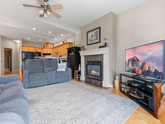 Arguably one of the best units in the complex! Welcome to this beautifully maintained 3 bed / 3 bath end-unit townhome in a gated community, offering incredible valley views! Recent upgrades include a new roof, heat pump, furnace, and hot water tank for peace of mind. The open-concept main level features a bright living area with large windows, a cozy NG fireplace, and a spacious kitchen. Step out to the balcony and soak in the sweeping views of the valley. The oversized primary suite includes a full ensuite and direct walkout to the private concrete patio. Downstairs you'll find two more full-sized bedrooms plus a double garage. Community amenities include a fully equipped clubhouse and RV/trailer parking. Don't miss this opportunity to make Maple Hills your new home!