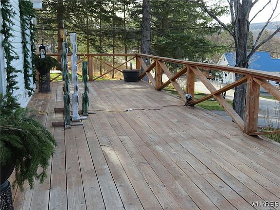 The homeowners purchase this property in March 2024. The cottage that they purchased was torn down. The Town, County and School taxes that are published from the tax records reflect the property that was in existence 2024. Since March of 2024 the new owners have updated everything. Trees were taken down, a new 100 foot well has been drilled, a new 28'X40'two-bedroom one bath Commodore manufactured home has been put in place. Now it is time for new owners to simply enjoy all of the hard work that has been done. Relax or entertain in the large open living, dining, kitchen area which features cathedral ceiling and easy to maintain vinyl flooring. Sliding doors lead to the open deck that surrounds the home where you can experience the changing views of Rushford Lake year-round. Other additions to the property include a 16'X24' one car garage, a 10'X16' She shed and a 14'X20' overed pavilion where you can entertain no matter what the weather brings. In the evenings you can gather around the open fire pit and roast marshmallows and have a relaxing glass of wine. A 20' wide deeded right of way (shared with 3 other owners) takes you to the lakefront where a new community dock will be built for the upcoming summer season.
