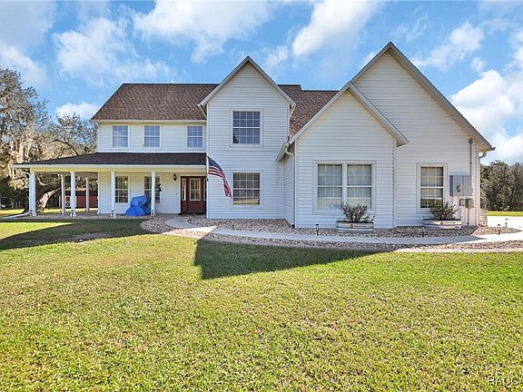 Bask in every sunrise and sunset at this stunning 4-bedroom, 2.5-bath home in beautiful Floral City! With over 3,400 sq. ft. of living space, this home offers warmth, comfort, and room to grow. Features include a spacious entryway, vaulted ceilings, fireplace, and a bright eat-in kitchen. Upstairs, enjoy a loft, bonus room, and a convenient elevator (installed 2019). Step outside to your private heated pool with a treadmill system, expansive patio, and deck shaded by mature oaks—perfect for yoga, grilling, or relaxing. The property spans over 2.5 fully fenced and cross-fenced acres, ideal for animals or hobby farming. Recent updates include luxury vinyl flooring throughout and a brand-new roof with transferable warranty. Also features a fitness room and large family room. This home is ready for you to start making memories—schedule your showing today!