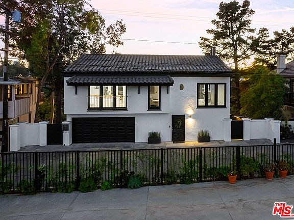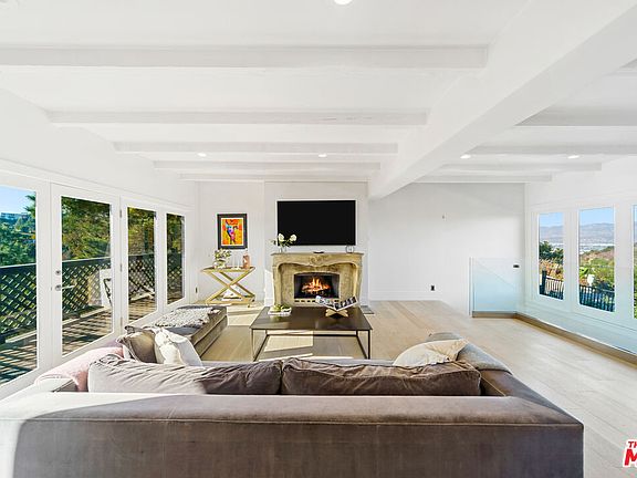 Located atop a serene Laurel Canyon cul-de-sac, this warm Mediterranean modern hilltop retreat offers unparalleled seclusion and breathtaking vistas. The home is a gem of contemporary design, featuring a floating staircase that seamlessly connects its three levels. Expansive floor-to-ceiling windows and decks on every floor provide uninterrupted, panoramic views from the first light of dawn to the golden hues of sunset. The main residence boasts two bedrooms, including a luxurious primary suite, and 2.5 elegantly appointed bathrooms. The formal dining room is perfect for sophisticated gatherings, while the chef's kitchen, complete with a central island, offers stunning views of the valley and the snow-capped mountains beyond. The original third bedroom has been transformed into a versatile den, featuring a spacious entertainment area with a fireplace, bar, and cappuccino station. This space opens onto a generous deck with a firepit, where towering pine trees frame the spectacular sunset. Additionally, the property includes full guest quarters with a private entrance, kitchen, patio, and gardens, ensuring comfort and privacy for visitors. This home is an oasis of tranquility, offering the perfect blend of isolation, luxury, and natural beauty.