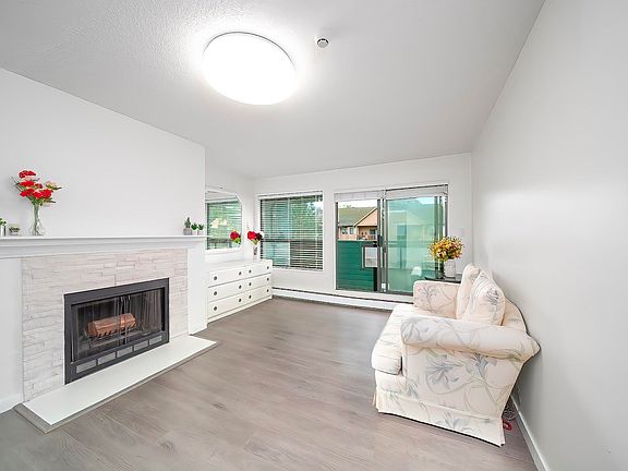 Beautifully renovated 2-bedroom, 1-bath apartment located in the heart of Richmond! This spacious 950 sq. ft. home offers a full-sized in-suite washer and dryer, a convenient storage room, and a charming wood-burning fireplace that creates a warm, romantic ambiance. Enjoy peaceful moments with an open courtyard view that brings in natural light and a relaxing atmosphere. The location is truly unbeatable—walking distance to bus stops; two SkyTrain stations; Cook Elementary school; Kwantlen Polytechnic University; shops; malls; and restaurants. Everything you need for comfortable, convenient living is right at your doorstep; Rentals allowed, Pets allowed (with restrictions) Maintenance fee includes heat and hot water Perfect for first-time buyer open house Nov 22, 23 from 2:00 to 4:00PM