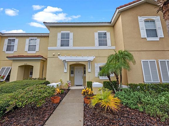 This beautifully maintained 3-bedroom, 2.5-bathroom townhome offers the perfect blend of comfort, style, and convenience Whether you're looking for a full-time residence, vacation getaway, or short-term rental investment. Step inside to find an open-concept living and dining area filled with natural light, creating an inviting space. The kitchen features modern appliances, ample cabinet space, and a breakfast bar for casual dining. Upstairs, you'll find three spacious bedrooms, including a primary suite with an en-suite bathroom and walk-in closet. The additional bedrooms are generously sized, perfect for family, guests, or even a home office .Outside, enjoy your private screened-in patio with a pool, ideal for relaxing evenings after a day at the parks. Located in the gated community of Encantada Resort, you'll have access to resort-style amenities including two community pools, a fitness center, clubhouse, playground, walking trails, and 24/7 security. Just minutes from Walt Disney World, shopping, dining, and golf courses, this property is a true gem.
