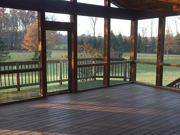 Upstairs has three bedrooms two full baths, kitchen, dining and living room. Access to spacious screen room and deck from dining room and master bedroom. Lower level has fourth bedroom, full bathroom, laundry room and two family rooms. Beautiful fireplace in family room. Flooring in house includes hardwood, ceramic tile and carpet. Three car garage with openers. Quiet location with easy access to SR 14, SR 303 and turnpike. One year lease. Tenant pays gas, electric and trash.No pets. *Lease does not include lake access,pastures or barn.