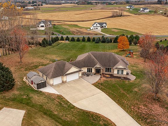 The finished walkout lower level includes a spacious family room with fireplace and wet bar, three more bedrooms, a bath with dual showers, ample storage, and a walk out to the large updated concrete patio. An added bonus is the recently added adjacent driveway slab with two additional storage sheds, ideal for equipment and extra storage. With its private setting and flexible layout, this home offers a rare blend of space, function, and scenic northwest Rochester setting on over 2 acres within 15 minutes of downtown. Inspection report from 2023 purchase available on request. Come and check it out!!