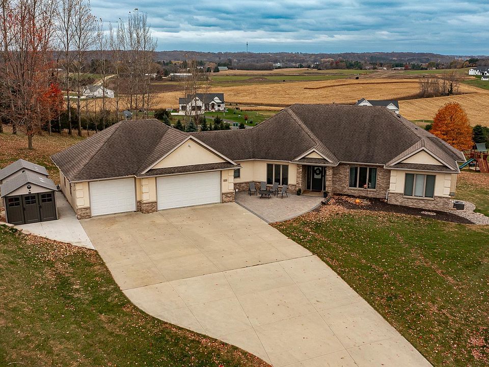 Tucked away on a quiet cul-de-sac in River Ridge, this custom home sits on 2.59 acres with sweeping countryside views. With 5 bedrooms, 5 bathrooms, and nearly 5,000 finished square feet, the home is thoughtfully designed for comfort and accessibility with 36” doorways, zero-entry access, and an elevator serving both levels.