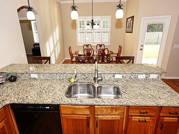 Bright & Open Contemporary 3 Bedrooms plus office, 2 baths. Tommy Williams energy efficient-split floor plan. Dramatic great room w/gas fireplace and built-in custom cabinets & bookcases, high-end custom plantation shutters. Granite counters & cherry cabinets. New refrigerator in 2018 and gas stove. Master suite with walk-in closets. Luxury bath has jetted tub & separate shower dual sinks. Inside laundry room. New interior and exterior paint; crown molding; surround sound; high ceilings throughout. Covered Lanai. Oversized 2-car garage. Sprinkler system. Premium lot with privacy fence, overlooking a private wooded area. Longleaf HOA includes front lawn maintenance & access to the beach entry pool, 24-hour fitness center, card room, private party facility, kiddie pool, play ground, tennis courts, basketball courts.