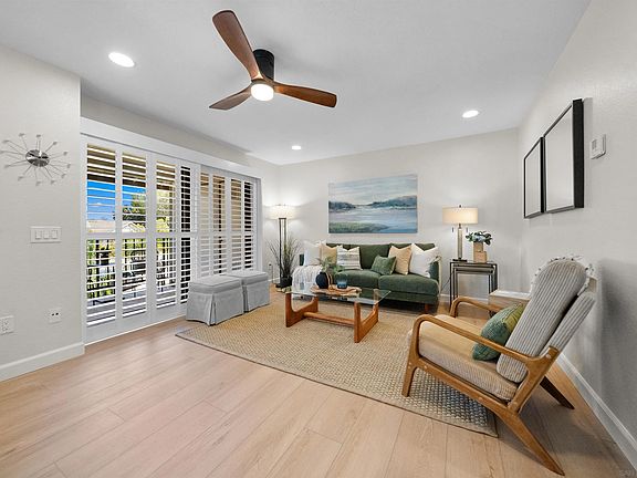 8595 Summerdale Rd #170 ~ Where comfort & updates combine w/ location & lifestyle to create the perfect place to call home. Amazing opportunity to own this bright & beautifully updated 1BR/1BA upstairs corner unit w/ no one above you & peaceful views of the surrounding neighborhood, trees & hills. Located on the outer edge of the complex, this home offers rare privacy, added convenience & easy access to extra street & guest parking. Inside you’ll love the freshly painted interior w/ newly installed LVP flooring throughout, recessed LED lighting, updated fixtures, modern ceiling fan & plantation shutters. The kitchen features woodgrain cabinets, granite counters, & new SS appliances including a smart WiFi-enabled range w/ multiple cooking modes, plus a new DW & microwave. The living area opens to a large covered SE-facing balcony that feels like an extended outdoor living rm. Imagine waking up w/ the morning sun, sipping coffee as light filters through the trees, unwinding after a long day, or just hanging out enjoying the breeze & backdrop of mature trees & neighborhood. Practical touches include a laundry closet & extra storage tucked off the balcony, plus a newer HVAC keeping life simple & comfortable year-round. Enjoy unbeatable access to shopping, eateries, groceries, plus the Mira Mesa Community Park & Rec Center, currently undergoing a major revitalization to expand sports fields, aquatics & community spaces. Easy fwy access, proximity to Miramar & nearby tech campuses round out the connected lifestyle. Come see why this home feels just right. WOW, Welcome Home!