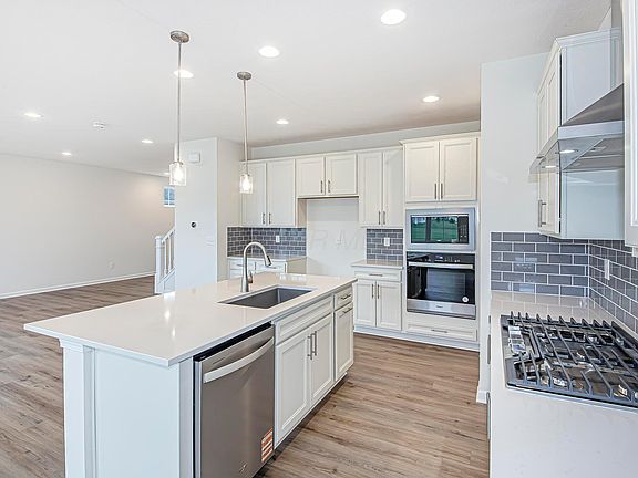 Don't miss out on this spectacular newly built 4 bed 2.5 bath home in Jerome Village. The kitchen has built in stainless gas appliances, dana colada purestyle cabinets - 42'' uppers, a convenience package, miami vena quartz counters, full height catch silicon gloss frost tile backsplash, upgraded composite steelstone gray single bowl sink, sleek moen faucet, an island with space for seating, pendant lighting, large walk in pantry and a planning center with a white carrara laminate counter. The owners suite has a private bath with a comfort height double bowl vanity, thin blanco maple quartz counter, walk in shower, enclosed toilet area, linen closet and a great walk in closet. An add'l 3 beds with walk in closets, full bath with a double bowl vanity, a loft, laundry and storage area. An eating space, cozy great room, 1st floor guest bed, full bath and a 2 car garage with opener and an electric car plug in. Full unfinished basement with an egress window and rough in plumbing. Smart home features. Brushed nickel finish package. Beautiful white rail and wood spindles. This beautiful home is ready for your visit today!