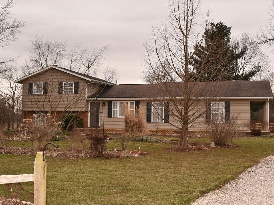 Quiet country setting on 10 acres - ideal for 4-H projects. Home has been meticulously maintained & updated throughout. A rare find - MAIN LEVEL MASTER WITH FULL BATH in a split-level floor plan! Features 4 bedroom & 2.5 baths, living & family rooms with wood burning stove. Updates include kitchen remodel with granite, stainless and travertine, new flooring, paint, entry doors, windows, electric upgrades, plumbing, sunroom addition, bath remodels, roof, siding, HVAC, water softener, HWT, poured basement addition...the list goes on. Deck overlooks extensively landscaped yard with many perennials. Both barn & shed have electric with water to the barn. Woven wire fencing around pasture. Pond is 1/2-3/4 acre. Conveniently located for an easy commute to Columbus. All you have to do is move in!