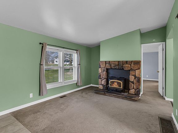 BEAUTIFUL ONE ACRE COUNTRY SETTING IN NORTHWEST SCHOOL DISTRICT! Enjoy conveniences of main floor living with 2 bedrooms & 2 full baths. Modern construction elements of drywall finished walls, vaulted ceilings & a cozy living room centered around a wood burning fireplace make this the perfect place to call home! Recent updates include a brand new roof (2019), windows (Fall 2023) & hot water heater (2022), new deck & front porch. A desirable floor plan features the primary en-suite on one end of the home and the 2nd bedroom and bath on the other. Bright & open kitchen comes with an appliance package and offers easy access to the new deck from the dining area. Full basement provides an abundance of storage and unlimited potential to finish. Nice shed for yard equipment & chicken coop!