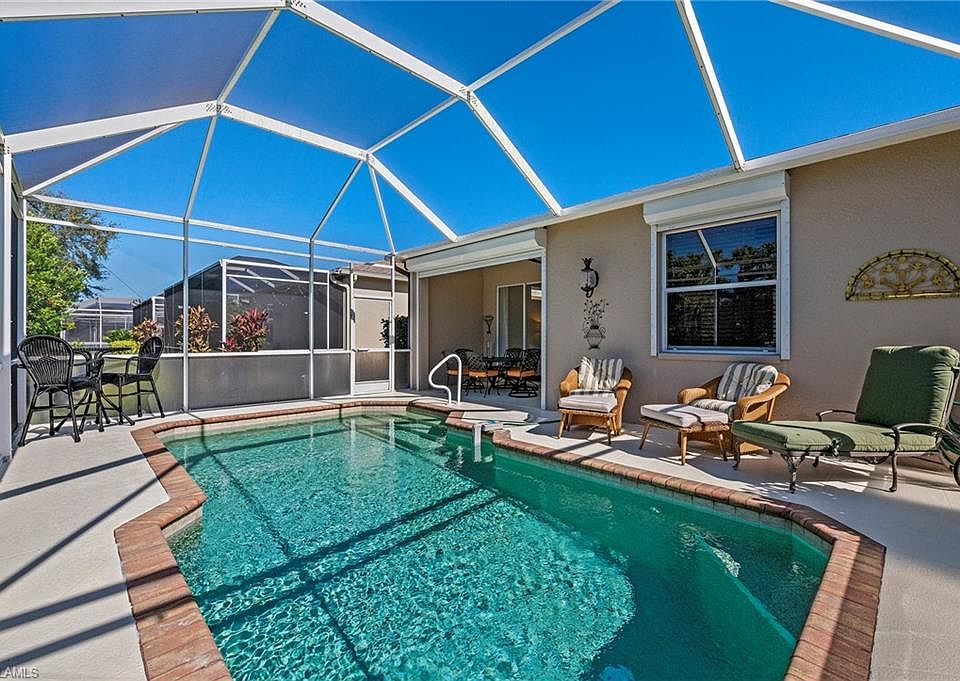 Fantastic opportunity in Ibis Cove! This charming & super clean 3bed/2bath home with heated pool & 2-car garage is the perfect place to call home. This property features stainless steel kitchen appliances, electric roll-down shutters for peace of mind, X500 flood zone, screened-in pool lanai, new washer & dryer, newer roof, newer AC, lots of storage, freshly painted interior & pool deck, and beautiful sunsets in the evenings. The super low HOA fees cover A LOT!!! Not only do they include cable/wifi, lawn care, & lawn irrigation, but the association will paint your house every 5 years, and the gated community includes a ton of amenities...community room, gym, pool table, pickleball, tennis, library, tot lot, and community pool! Great value! Don't let this one get away...it's the only house with pool available. Make your showing request today, and hopefully you can call 8599 Ibis Cove Circle home.