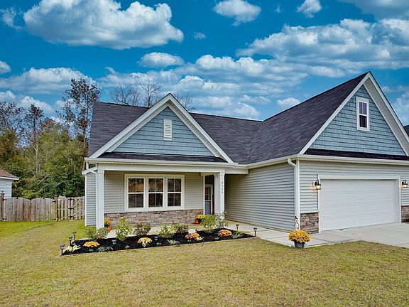 This home is the Mallard Classic with optional Bonus room, for a total of 4 bedrooms. The exterior features low-maintenance vinyl siding with stone accents, a covered front porch, and a fenced back yard with a screened patio area! Inside the front entrance is a foyer that leads into the large living room which boasts a fireplace, vaulted ceiling, and new neutral gray carpet (to be installed on 11/16). This home has an open floor concept with granite counter-tops, an island, stainless steel appliances, upgraded cabinets, and a tile back-splash. A nearby hallway leads to the 3 downstairs bedrooms, including the large master suite, which has a trey ceiling, walk-in closet, double vanity, and walk-in shower. Enjoy long soaks in the spacious garden tub! This home has been freshly painted, with updated flooring! Lanvale Forest is located convenient to Brunswick County Beaches, shopping, dining, and golf! Neighborhood amenities include a community pool and street lamp lined roads, great for the active family. Welcome home!