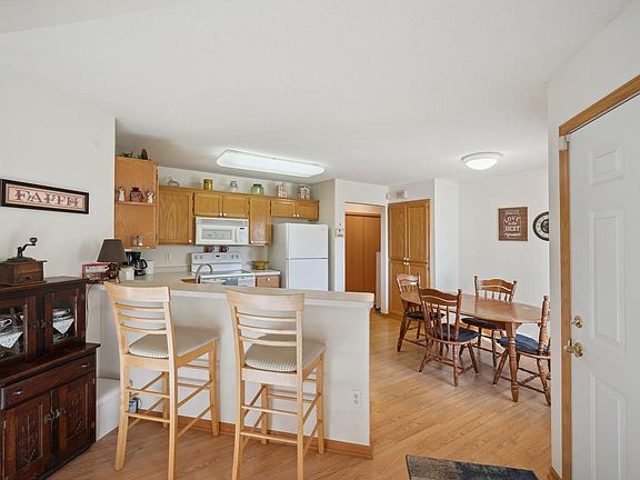 Adorable one level townhome located in Saint Michael features 2 beds, 2 baths and a large 2 stall garage with an 8x6 workshop area. The front patio welcomes your guests and would be a great area to sit and relax. Entering the home the open floor plan shows how spacious the main area is with an eat in kitchen, formal dining room, and a sizable living room. Don’t forget about the sun room that is filled with natural light featuring a gas fireplace and walks out to the private back patio. The owners suite has a walk in closet and private bathroom. As you come in from the garage you will find the utility room, coat closet and laundry room that has a utility sink, built in shelving and hanging bar. Roof is new, doors in the home are extra wide to accommodate walkers/wheel chairs if needed. This location is close to shopping, dining, grocery stores and quick access to I-94. 1 Year HSA Home Warranty is included with this home.