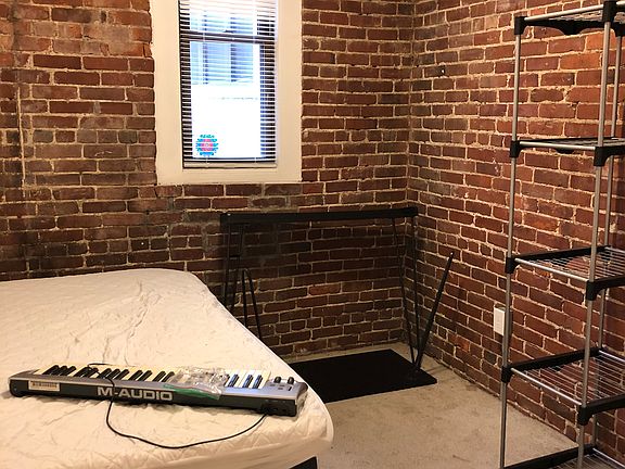 Each bedroom has ample closet space with exposed brick throughout the whole unit.