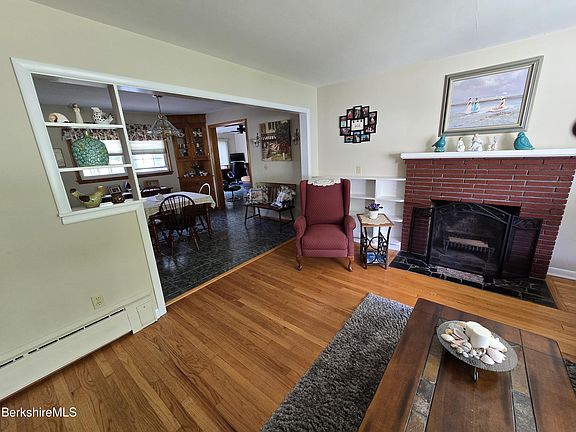 Enjoy the ease of true one-level living in this charming, well-maintained home featuring a one-car attached garage and inviting living room with hardwood floors and a cozy fireplace. With two generously sized bedrooms and a full bath, this home offers comfortable space and functionality. The galley kitchen flows seamlessly into the dining area and spacious family room, where sliders lead to a private back deck—perfect for relaxing or entertaining. You'll love the gleaming hardwood floors, abundant storage, and partially finished basement for added versatility. Additional highlights include natural gas heat & hot water, vinyl replacement windows. Fantastic location close to amenities, shopping, schools, and parks.