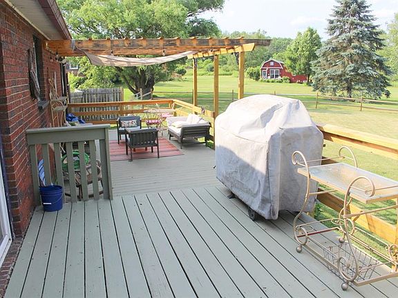 Cozy Brick ranch just minutes out of the Village of Owego sitting on an acre of beautiful land! Tiled foyer, Bright/large living room open to kitchen. Wood stove insert in Fireplace with brick surround. Gorgeous great room with cathedral ceilings, natural wood beams, bow window, built-in bookshelves and patio doors to the deck. Home has 3 bedrooms, one bedroom with sliders to deck and 1 1/2 baths. Home nicely landscaped. 2 tier deck overlooking the back yard.