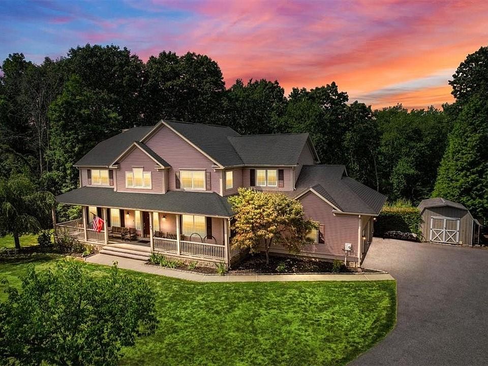 STUNNING & PRISTINE colonial in Sugar Loaf Trails -- complete w/ a heated, in-ground pool! More than 4,000 square foot (4,004) spread out over three floors, which includes a finished, walk-out basement -- all on 1.8 acres. Curb appeal galore, lots of recent updates, and beautiful detailing throughout! Classic front porch enters to foyer w/ pillars and 9 foot ceilings. Main floor includes open chef's kitchen w/ all the amenities, which leads to expansive back deck and pool area -- perfect for entertaining! Family room includes fireplace and built-in bookshelves. Upstairs features large sitting area w/ window seat and more built-ins at top of stairs, and expansive master en suite w/ large dressing room and walk-in closet, and sunken bathroom w/ whirlpool tub. Beautiful & mature landscaping/hardscaping. Large detached shed compliments attached 2-car garage. Fantastic commuter location close to highway, train, bus. So much to do in this area! $5,000 CASH BACK AT CLOSING! Additional Information: Amenities:Dressing Area,Stall Shower,Storage,HeatingFuel:Oil Above Ground,ParkingFeatures:2 Car Attached,