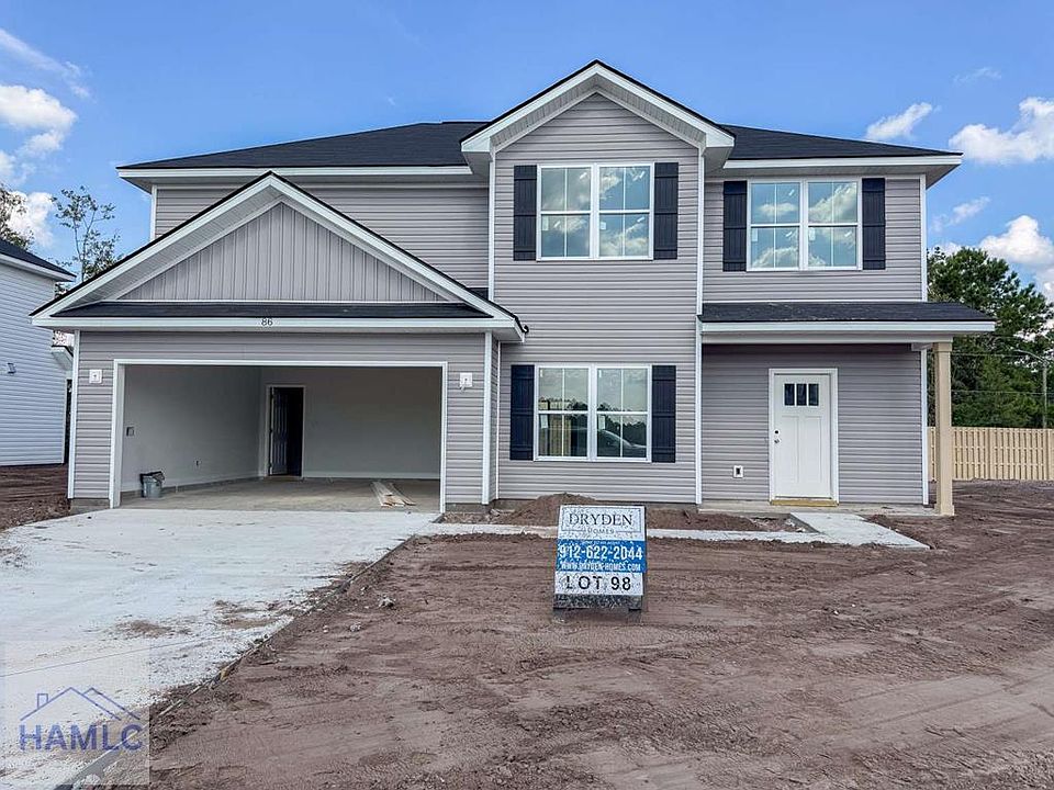 Two-story home in Boundary Hall! Situated on the edge of Liberty County near local area schools & close to shopping! Minutes to Hinesville, Ft. Stewart & Jesup! Step into the Rebecca plan at 86 Boundary Hall Way & take in the foyer with dining room adjacent. Move further into the home to find a family room with a fireplace! The kitchen sits just off the family room with patio access from the breakfast area. Within the fully equipped kitchen, find ample cabinetry with granite counters & stainless appliances. Just off the kitchen is a drop zone with a pantry & access to the 2-car garage. Upstairs, find 3 bedrooms, a hall bath, a laundry room & the primary suite. The primary suite features a vaulted ceiling, 2 walk-in closets & private bath. Granite vanity, soaking tub & separate shower can al lbe foudn in the primary bath! Estimated completion October 2025.