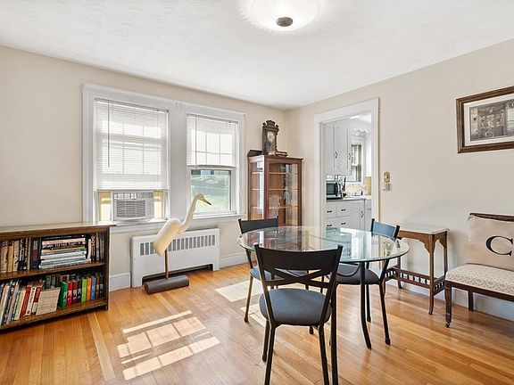 Prime Watertown location with easy bus and commuter rail access. First floor unit with hardwood floors and tons of natural light. Two equal sized bedrooms with ample closet space. Large living room opens up into the dining space and kitchen. 2 parking space including a garage and laundry makes this a rare find. Bonus storage in basement and three season enclosed porch. Commuters dream near the purple line T stop. Close to shops, restaurants and all that Watertown has to offer. Freshly repainted and available Oct 15 or November 1st.