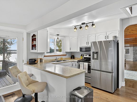 Welcome to 86 Cedarshores, an exceptional four-season waterfront home or cottage located in the highly sought-after Cedarshores community along the Trent Severn Waterway. Tucked away on a quiet dead-end street, this property offers a rare combination of privacy, peaceful surroundings, and beautiful year-round views of the Trent RiverWith 75 feet of pristine waterfront, you'll enjoy a concrete retaining wall and a permanent dock-perfect for swimming, boating, fishing, or simply unwinding by the water. The sunsets here are truly breathtaking, casting warm colours over the river each evening. Whether you're sipping your morning coffee or enjoying a glass of wine at dusk, the dock provides an ideal place to relax and take in the natural beauty around you. Situated in a sheltered channel between two locks, the location offers access to 19 km of boating and a direct route into Lake Seymour, with Rice Lake just beyond Lock 18.Inside, the home features hardwood floors, a bright bay window that fills the living area with natural light, three comfortable bedrooms, and 1.5 bathrooms. The layout is functional and inviting, designed for both everyday living and hosting guests. The home includes full laundry with updated appliances and thoughtful touches that enhance convenience. The raised, insulated crawl space (spray foam 2020) provides excellent storage and houses a modern water treatment setup, including a Viqua UV system, water softener, and a propane furnace installed in 2022.Step outside to enjoy numerous updates completed with care: new exterior insulation, vinyl siding, and soffit with pot lights (2024), two covered decks ideal for outdoor dining or relaxing in the hot tub, a durable steel roof, propane generator, multiple storage sheds, a paved driveway, and a permanent dock. Additional features include central air, central vacuum, propane heat, a new wood stove, and high-speed internet. This property is perfect as a full-time residence or weekend retreat.
