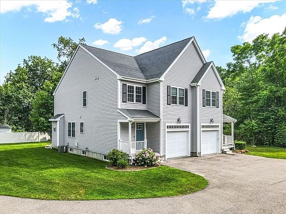 **Offer deadline Monday 7/14/25 at 12:00pm.**Beautiful 3-bed, 2.5-bath townhouse on a quiet cul de sac. Front porch adds to the curb appeal and 1-car garage with additional parking offers convenience. First floor features hardwoods, 1/2 bath and an open layout. Kitchen boasts shaker cabinets with bold hardware, Quartz counters, SS GE Profile appliances, walk-in pantry, breakfast bar, and dining area. Bright living room has gas fireplace accentuated by decorative molding. Sliders lead to welcoming patio and yard with cozy fire pit. Upstairs find a full size laundry closet, large hall closet and gorgeous full shared bath w/tub. Primary suite has plush carpet, ceiling fan, WIC, plus lovely ensuite with walk-in shower. 2 additional generous sized bedrooms complete the 2nd floor. Full unfinished basement offers great storage or potential to finish. Owner managed assoc., pet friendly, vinyl siding, Simonton windows, propane gas, city water/sewer and low condo fee.