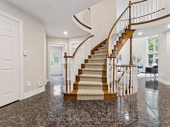 *Experience Resort-Style Living in Aurora Highlands* This executive home sits on a premium 59.23 ft x 154.44 ft lot, backing onto protected forest for rare privacy and a true backyard retreat. With nearly 5,300 sq ft of living space (3,946 above grade), 4 bedrooms, 5 bathrooms, and a 3-car garage, this property offers both function and lifestyle. Step inside to a grand rotunda staircase, smooth ceilings, and a sun-filled layout. The main floor features hardwood flooring, new pot lighting, a formal living and dining room, and a family room with 18-ft ceilings, Palladian windows, and a 3-sided gas fireplace. The kitchen is equipped with granite counters, a breakfast bar, and a walk-out to your private yard. A main-floor office and laundry/mudroom with garage access add convenience. Upstairs, the primary suite includes his & hers walk-in closets and a spa-inspired ensuite. Two secondary bedrooms feature cathedral ceilings; one has its own ensuite, while the others share a Jack & Jill bath. All bedrooms include walk-in closets. The finished basement offers 1,600 sq ft of flexible living space, a 3-piece bath, and ample storage. Your outdoor oasis features a heated 46-ft saltwater pool with both solar and gas systems, a cabana with electrical/water hookups, a dual-motor hot tub with Wi-Fi control, an outdoor shower, two gas lines, and professional landscaping; all this backed onto a private greenspace. Lovingly maintained by original owners with major updates: furnace + AC (2025), bathrooms (2 yrs), garage doors (2 yrs), roof (8 yrs), NorthStar windows (partial), central vac (1 yr), water softener + iron filter (5 yrs), 200-amp service, and more. Prime Aurora Highlands location: top-ranked schools (Highview PS, Light of Christ CES, Aurora HS), minutes to trails, golf, shopping, and Hwy 404/407. Want to see more - check the virtual tour for full photo gallery, video, and floor plans.