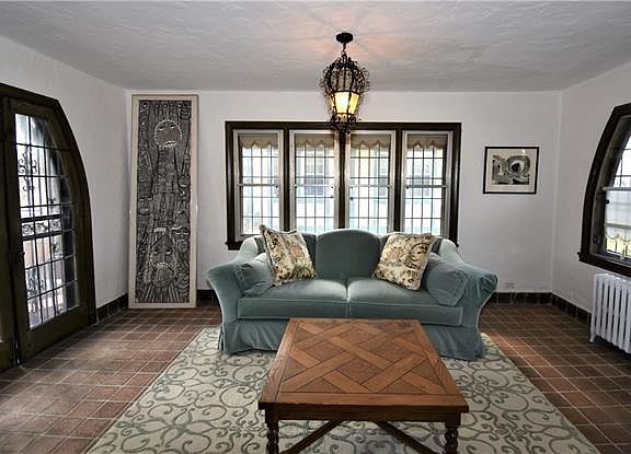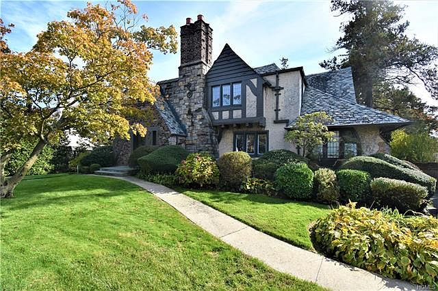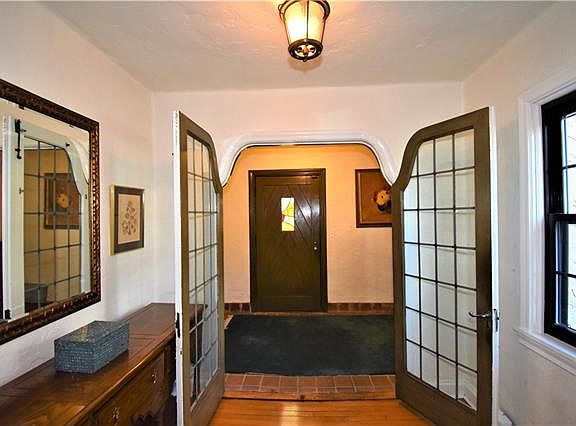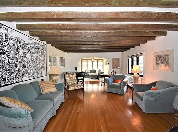 Handsome sun filled Tudor with exceptional flow for entertaining. Large and welcoming entry foyer opens to an oversized gorgeous living room with fireplace, which leads both into the formal dining room with leaded glass French doors, as well as the sun room with leaded glass French doors to patio. Well proportioned formal dining room with door to eat-in-kitchen & butlers pantry, makes this the perfect place for entertaining. Beautiful architectural details including hardwood floors, leaded glass windows & French doors, beamed living room ceiling, oversized rooms, custom wood doors and much more can be found throughout this home.