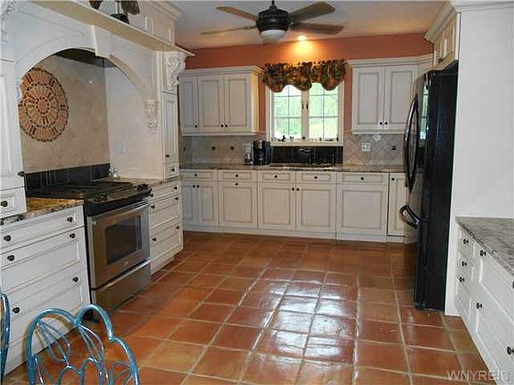 (716)655-9610 If privacy is what you desire, this sprawling ranch on 3 acres is perfect. 22 minutes from downtown and less than 1 mile from the Village of East Aurora. A beautiful private lot that contains an expansive ranch home with a 4000 sq ft barn that has a newer metal roof and siding with 3 horse stalls. A great man cave, suitable for any hobby. The open floor plan has a gourmet Tuscan kitchen w/"Saltillo" tile, Brookheaven Cabinets and a heated floor. The bright large living room has built-ins w/ a hardwood heated floor.and wood burning fireplace. A mother in law apartment has a separate entrance, furnace, and rents for $850/mo but can easily be reincorporated back to the main house via French doors which enter to the living room.