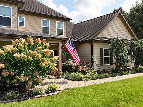 The home has an inviting front/side wrap around porch with paver stone walkway & a corner nook surrounded by beautiful foliage to host anything from quiet morning coffee to relaxing evening wine under a beautiful chandelier for some peace & tranquility.