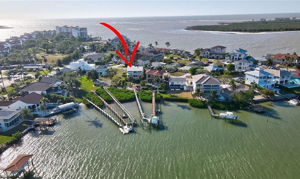 Prepare to be captivated by this incredible custom home in the highly sought-after Isles of Capri! This stunning residence offers a Great Room floor plan flooded with natural sunlight and showcases two expansive decks that extend from the home, providing breathtaking views from almost every room. Whether you’re starting your day with a serene sunrise or winding down with a spectacular sunset, these spacious outdoor areas are perfect for lounging, entertaining, or simply soaking in the serene surroundings. Featuring 3 spacious bedrooms and 2 well-appointed bathrooms, this home is designed with comfort and elegance in mind. The large kitchen is a chef’s dream, boasting sleek quartz countertops, stainless steel appliances, pristine white cabinetry, and a walk-in pantry that offers abundant storage. Adjacent to the kitchen, a convenient laundry room with a sink adds an extra touch of functionality to this already exceptional space. Step outside to discover an unparalleled waterfront retreat. The property features a private boat dock with a 10,000-lb boat lift, accommodating vessels up to 33 feet overall and 9.5 feet wide. With minutes to the Gulf, a quick 10-minute ride to Keewaydin Island, and easy access to Marco Island and downtown Naples, this home places you at the heart of Florida’s finest waterfront lifestyle. For added convenience, enjoy 30 and 50-amp service, ideal for motorhomes or electric vehicles. Additional amenities include a tandem 3-car carport, built-in tool bench, an air-conditioned workshop, and an outdoor shower. The meticulously maintained rock gardens and lush tropical landscaping create a serene backdrop as you stroll to your dock. This home truly embodies the best of coastal living with its perfect blend of luxury, functionality, and location. Don’t miss this rare opportunity—schedule your private tour today and experience the Isles of Capri lifestyle for yourself!