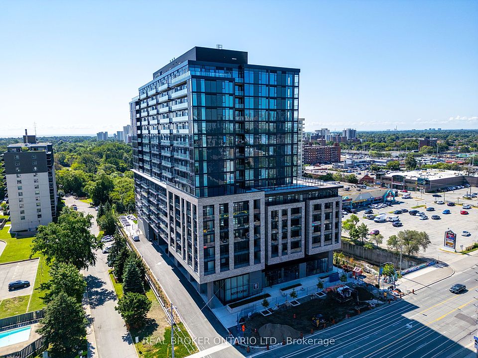 Exceptionally Designed Corner Suite in Popular Cooksville Area. This spacious 16th floor unit is stylish with thoughtful, clean aesthetics and a creative flair. The open-concept living and dining area flows seamlessly into a modern kitchen equipped with sleek cabinetry and premium finishes. It has a unique and expansive 134 square feet balcony with northwest-facing views, 2 bedrooms, a den, and 2 washrooms. The building has an amazing array of upscale amenities spread over 17,000 square feet for residents to enjoy. This includes access to concierge service, fully equipped gym, art gallery, yoga studio, party room with lounge seating, and an outdoor terrace with seating area. Located not far from the heart of downtown Mississauga, residents have easy access to a rich selection of dining, shopping, schools, health facilities, and entertainment options. Walk to Cooksville Park, Celebration Square, and more to spend some quality down time in nature. Steps to the new Cooksville LRT Station. A quick ride or drive to some great freshwater beaches and walking trails along Lake Ontario.
