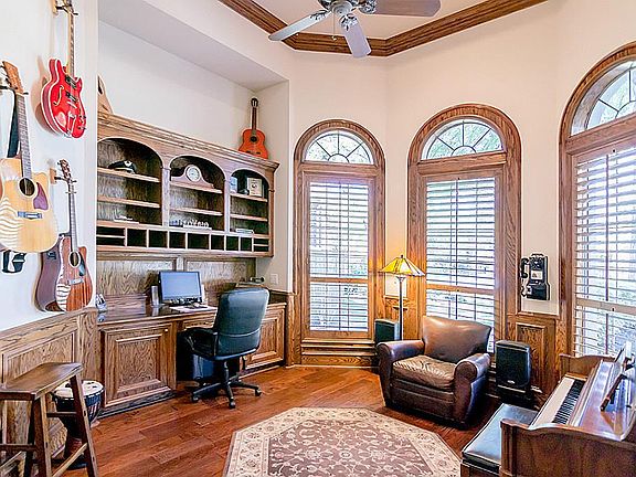 Pristine 5/4.5/3 custom in Alden Bridge. Resort-like backyard with large saltwater pool & spa, lush landscaping, multiple patio spaces & playground area. Designed with function & beauty in mind! Hardwood floors, soaring ceilings & crown molding throughout. Both the formal Living & Family Rooms feature fireplaces & built-ins. Gourmet kitchen! Spacious Master Suite plus guest bedroom down. Three secondary bedrooms, Gameroom with French doors & Texas basement upstairs. Roof & A/C replaced in 2016.