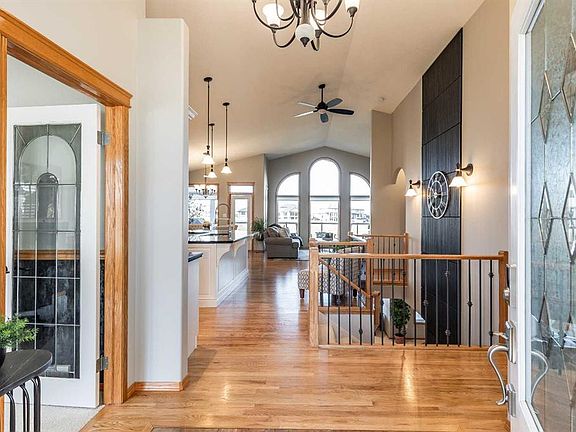 This executive-style walkout bungalow is a showstopper, offering breathtaking coulee and sunset views that captivate you from the moment you step through the entryway. The open-concept design allows sightlines through every angle of the home, drawing your eye straight to the stunning scenery beyond. Vaulted ceilings, expansive windows, and natural light define the main floor, creating an airy, luxurious atmosphere. The living room showcases a gas fireplace with stone accent, framed by sunlight, while a feature black wood accent wall ties beautifully with the black granite surfaces carried throughout the kitchen and ensuite. The kitchen is both stylish and functional, featuring a large island, corner pantry, stainless steel appliance package, and sleek custom cabinetry. The dining area flows seamlessly onto the covered back deck that spans the width of the home—perfect for soaking in the panoramic views. The primary suite offers deck access, a spa-inspired five-piece ensuite with porcelain tile and granite finishes, and a generous walk-in closet. A den off the front entry, main floor laundry, and a two-piece powder room add everyday convenience to this level. Downstairs, the fully finished walkout basement features an illuminated staircase, two spacious bedrooms, a four-piece bath, and an inviting family area with expansive windows overlooking the beautifully landscaped, fenced yard. Outside, the stucco and stone exterior, manicured foliage, and vibrant flowers elevate the home’s impressive curb appeal. The heated garage with epoxy flooring adds a touch of practicality and polish. With countless updates—including windows, doors, appliances, paint, blinds, kitchen, bathrooms and more —this home blends modern elegance with timeless design. Situated in a quiet neighborhood near parks, schools, and walking trails, this property is stunning, sophisticated, and truly one-of-a-kind. This home won’t last long!