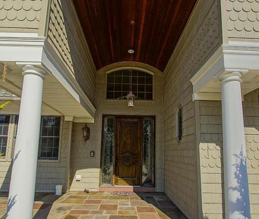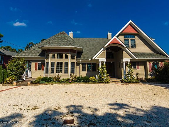 This majestic stately home sits on the bluff of the METEDECONK RIVER and it is unequal to any house on the River on the market. The house was built in 2006 and can not be reproduced today for the asking price. This almost 7,000 sq ft house sits on over a 1/2 acre of secluded tranquility with views to Barnaget Bay. MASTER CRAFTSMANSHIP through out this lovely home. Wide, white sandy BEACH and BOAT DOCK. Property has a RIPARIAN GRANT. A 3 car CARRIAGE HOUSE GARAGE with room on 2nd level for Nanny or Maids/Caretaker quarters. lst floor MASTER SUITE has magnificent HIS and HER'S FULL BATHROOMS. FULL FINISHED WALK OUT BASEMENT leads out to the beautiful sandy BEACH. BALCONIES off every Bedroom on the 2nd level. Special WALK THRU VIDEO TOUR - click on V/T.