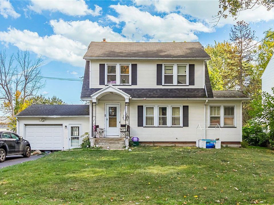 Conveniently located in the heart of Gates, this charming colonial offers the perfect blend of space and easy accessibility to everywhere you need to be! Enjoy being just minutes from shops, restaurants, grocery stores, and more! All with easy access to both 390 and 490, you can get anywhere you need to be quickly and easily. Situated on a spacious, nearly half-acre lot in a quiet, low-traffic neighborhood, this home offers both privacy and convenience. Inside, you’ll find over 1,200 SqFt of living space featuring 3 bedrooms and 1.5 baths. The terrific open-concept layout flows from the eat-in kitchen with a breakfast bar overlooking the formal dining area and into the spacious living room. Perfect for entertaining or everyday living. A convenient half bath and enclosed porch complete the first floor, a great flex space for an office, playroom or cozy den. Upstairs, three large bedrooms provide plenty of room to spread out. Private and large backyard! A wonderful opportunity to enjoy space and location!
