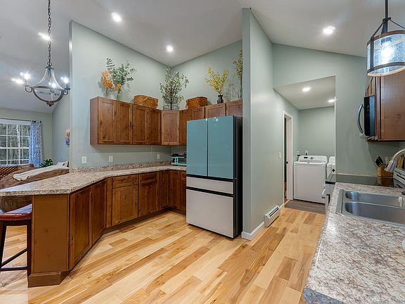 Looking for water access and a spot to moor your boat? 86 Fernald Road offers that and more! This home was completed in November of 2023. Stunning three bedroom, two full bath, ranch with an attached two car garage. Upon direct entry from the garage you enter the basement level with coat closet and hallway, which offers space for each season's gear. On the basement level there is a finished bonus room that can be utilized for office space, exercise area or theater room. Head upstairs to the main level where you are greeted by cathedral ceilings, equipped with recessed lighting, in the open concept kitchen, living and dining room spaces. The kitchen offers a Samsung Bespoke fridge, dishwasher and microwave; the electric range is a 'Classic' glass top by Unique. Birch hardwood floors throughout the main living space and bedrooms. The home has a primary bedroom with en suite, designated laundry area and pantry. Outside the property offers 2.37 acres of privacy AND deeded access to Tripp Lake for all season recreational activities (boating, snowmobiling, ice fishing, hunting, etc.). Take a short walk down to lot 34 (900 ft.) where you can drop a mooring for your boat, lay on the beach and soak up the summer sun. Poland residents also have access to two beaches one on Tripp Lake , only 1.3 miles away and one on Range Pond. The side deck has a hot tub to warm up in on the cold winter nights. Home is also equipped with a generator hook up, automatic garage door openers, Wi-Fi spotlight/camera overlooking the driveway, heat pump and wall hung propane furnace. Don't miss your chance to own this year round oasis in the heart of the Lakes Region! Only 40 minutes to Portland, 25 minutes to Lewiston/Auburn and 25 minutes to Windham.